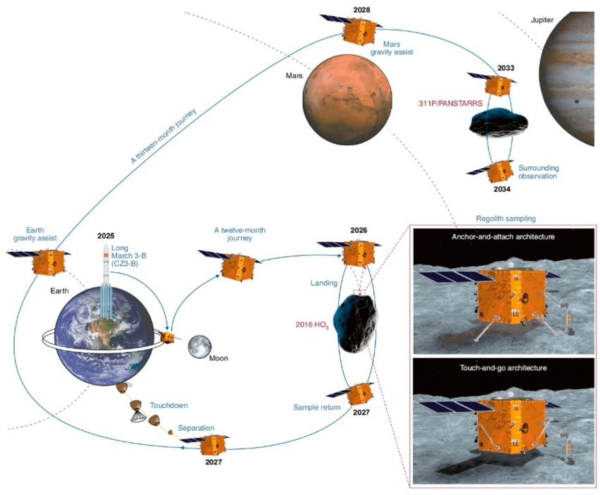 Con el lanzamiento de Tianwen-2 el 29 de mayo de 2025, China ha iniciado su cuarta misión interplanetaria tras Yinghuo-1, Chang’e 2 y Tianwen-1. Esta nueva misión buscará obtener muestras del asteroide 469219 Kamoʻoalewa y, posteriormente, estudiar en detalle el cometa 311P/Elst-Pizarro. Se trata de un proyecto ambicioso que no solo permitirá el retorno de material primitivo del sistema solar a la Tierra, sino también la exploración prolongada de un objeto híbrido entre asteroide y cometa en el cinturón principal.