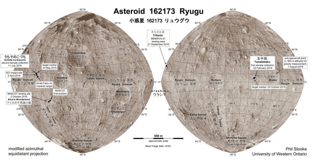 Ryugu es un asteroide cercano a la Tierra (NEA, Near Earth Asteroid) perteneciente a la familia de los objetos tipo Apollo. Fue descubierto en 1999 por el proyecto LINEAR y designado inicialmente como 1999 JU3, hasta recibir en 2015 el nombre oficial “Ryugu”, tomado del palacio submarino de la mitología japonesa donde, según la leyenda, se custodian tesoros. Este nombre resultó muy apropiado, pues el asteroide fue escogido como destino de la misión Hayabusa2 de la agencia espacial japonesa JAXA con el propósito de extraer y traer a la Tierra muestras de sus materiales primitivos, auténticos “tesoros” cósmicos.
