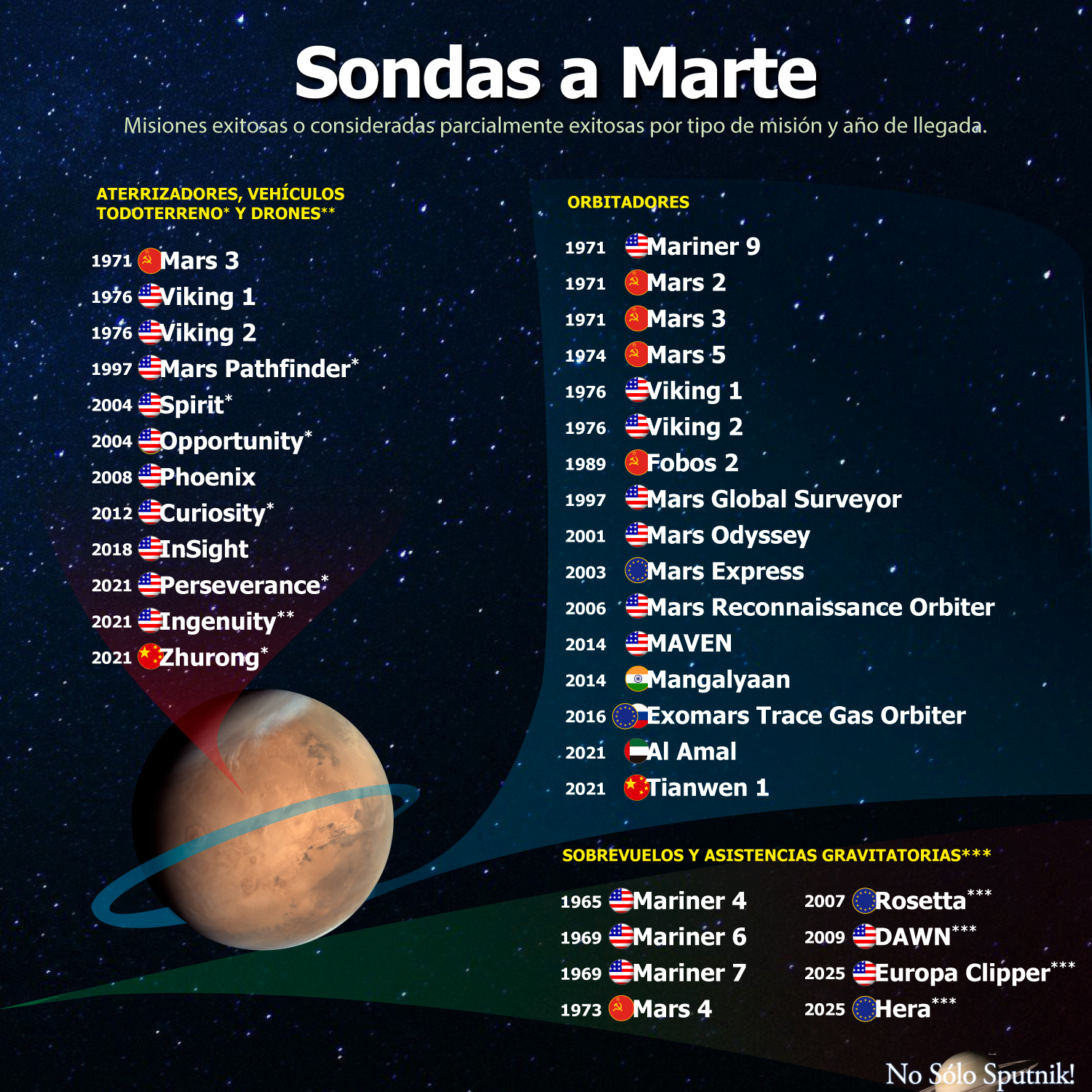 | Tianwen-1 | 🇨🇳 China | 2020 | Orbitador Rover | Éxito Éxito |