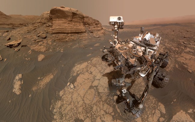Autoretrato del rover Curiosity en la zona denominada «John Klein» en el Sol 177 de su misión, el 3 de febrero de 2013.