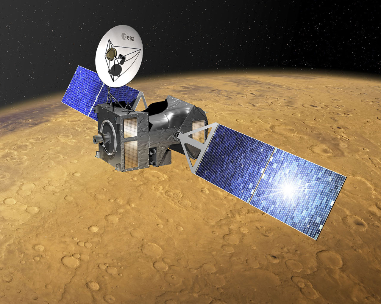 La misión ExoMars Trace Gas Orbiter (TGO) es un orbitador desarrollado conjuntamente por la Agencia Espacial Europea (ESA) y Roscosmos con el objetivo de estudiar la composición de la atmósfera de Marte y su relación con los procesos geológicos y climáticos del planeta. Lanzado en marzo de 2016 y operativo desde 2018, el TGO fue diseñado para detectar gases traza como el metano, cuya presencia podría estar vinculada a actividad volcánica o biológica, y para caracterizar la distribución de vapor de agua y de hidrógeno en el subsuelo. Además de su labor científica, actúa como enlace de comunicaciones para las misiones en superficie, asegurando la transmisión de datos entre los rovers y la Tierra dentro del programa europeo ExoMars.