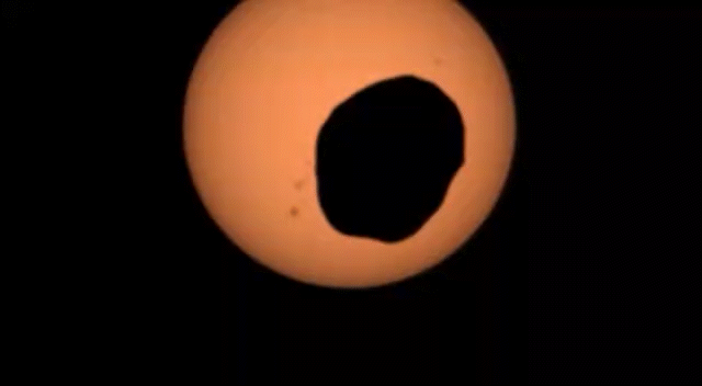 Uno de los momentos más llamativos fue la observación de un eclipse de Fobos, la luna interior de Marte. Las cámaras de Perseverance captaron cómo el satélite pasaba frente al Sol, generando una breve pero precisa oportunidad de medir movimientos y trayectorias.