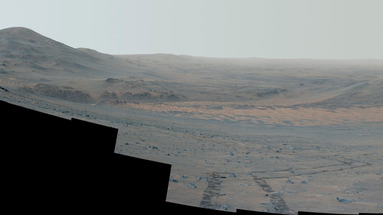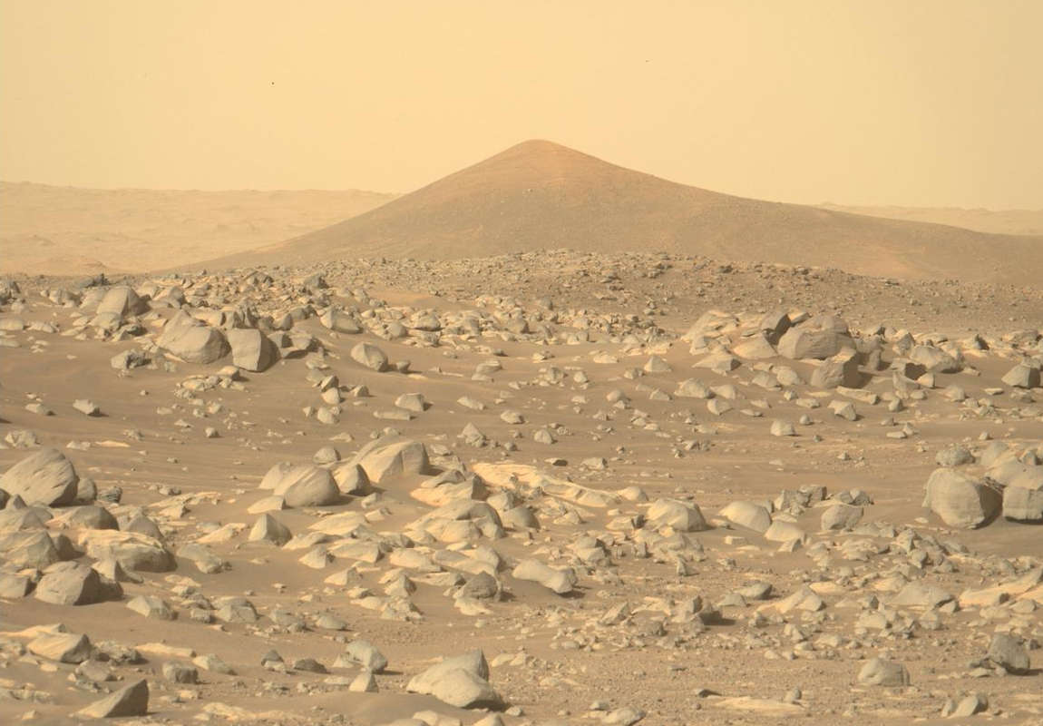 El rover Perseverance de la NASA utilizó su sensor de imágenes dual Mastcam-Z para capturar esta imagen de «Santa Cruz», una colina dentro del cráter Jezero, el 29 de abril de 2021