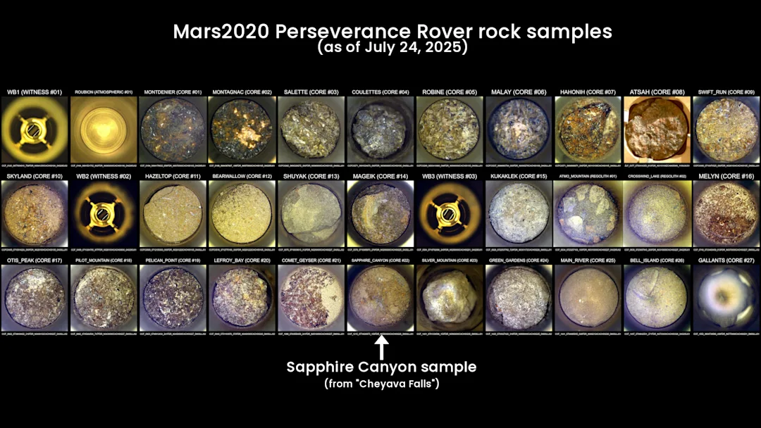 En paralelo, el rover continuó recogiendo muestras. Algunas de ellas resultaron ser especialmente prometedoras: núcleos de roca con inclusiones minerales y texturas que, bajo el análisis de SHERLOC y PIXL, mostraban variaciones químicas vinculadas a antiguos ambientes acuosos. Hacia finales de 2024, el equipo de la misión comunicó que varios de estos núcleos contenían señales que podrían interpretarse como posibles biomarcadores de procesos microbianos antiguos. Aunque todavía se necesita la verificación en laboratorios terrestres, el anuncio situó a Perseverance en el centro del debate científico internacional.
