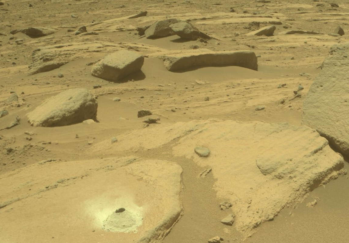 En abril de 2022, Perseverance alcanzó la base del delta y comenzó a explorar su entrada, una zona denominada “Hogwallow Flats”. Desde allí, sus cámaras panorámicas Mastcam-Z y los instrumentos en el brazo robótico comenzaron a estudiar las texturas sedimentarias y los contactos entre diferentes capas de rocas. Los hallazgos iniciales mostraron evidencias de antiguos procesos fluviales, como cantos rodados transportados por corrientes rápidas, lo que sugería que el delta había sido testigo de episodios de gran energía hidráulica.
