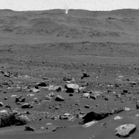 Animación de un remolino de polvo o «dust devil» captado por el rover Perseverance el 30 de agosto de 2023. La animación se aceleró 20 veces y consta de 21 fotogramas tomados con una separación de cuatro segundos.