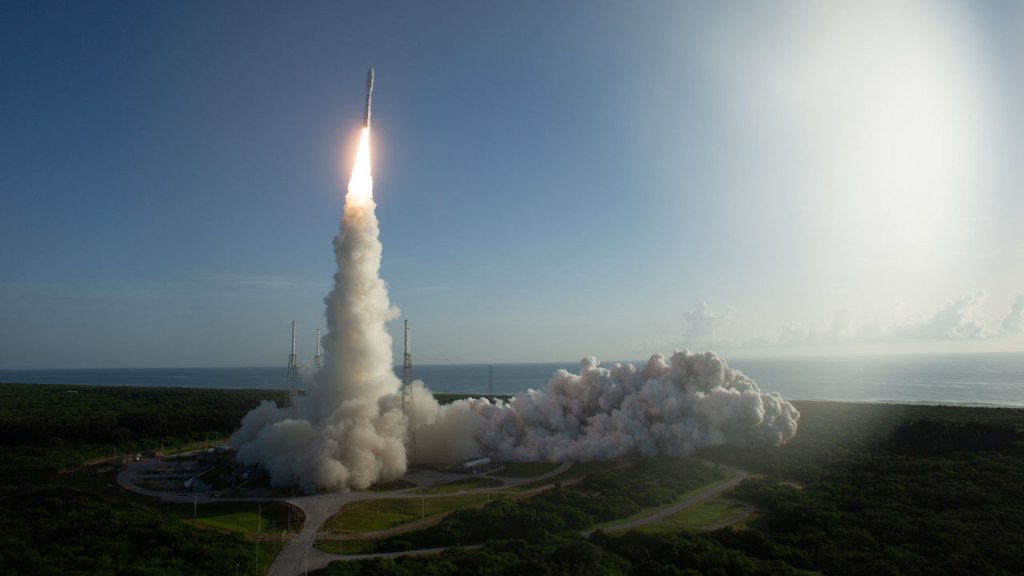 Imagen del lanzamiento del cohete Atlas V con la misión Mars 2020 rumbo a Marte.