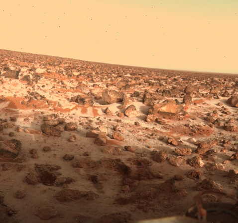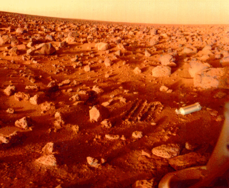 Primera imagen del aterrizador Viking 2 desde la superficie marciana, tomada el 5 de septiembre de 1976, dos días después del aterrizaje