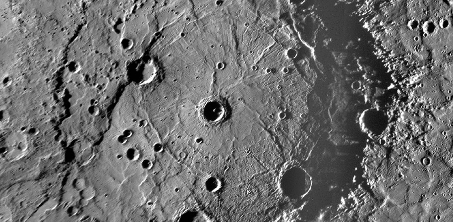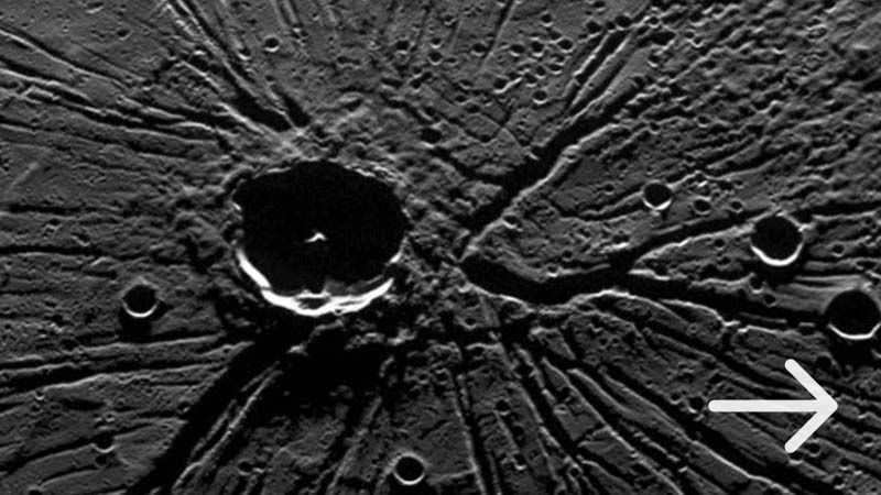 Conoce el cráter araña en Pantheon Fossae, una singular estructura con líneas radiales que parten de una gran depresión central.