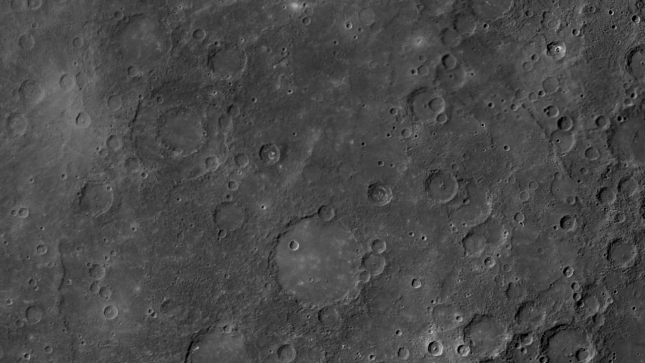 La superficie de Mercurio ha sido contantemente bombardeada y craterizada por meteoritos y asteroides, dando lugar a un paisaje muy similar al lunar.