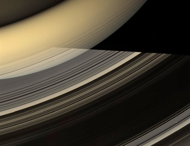 Como vemos, desde que la humanidad lleva observando el planeta, la característica más inconfundible del planeta Saturno es su espectacular sistema de anillos. Ya en la era espacial, distintas sondas han mostrado que los otros tres planetas gigantes del sistema solar exterior tienen sistemas de anillos tenues en torno a ellos, formados por hielo y polvo, pero ninguno resulta tan extenso, complejo y asombroso como el sistema de anillos de Saturno. Los anillos más visibles se extienden por el plano ecuatorial entre 6.600 y 134.000 km desde la capa de nubes exterior de la densa atmósfera del planeta. El grosor de los anillos varía entre los 10 m y 1 km y están compuestos por bloques de entre 1 cm y 10 m de un 99,9% de hielo de agua y otras impurezas.
