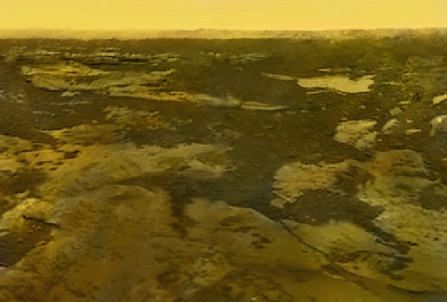 Extracto de imagen de Detlev Van Ravenswaay para fineart.america del módulo de descenso Venera en la superficie de Venus.