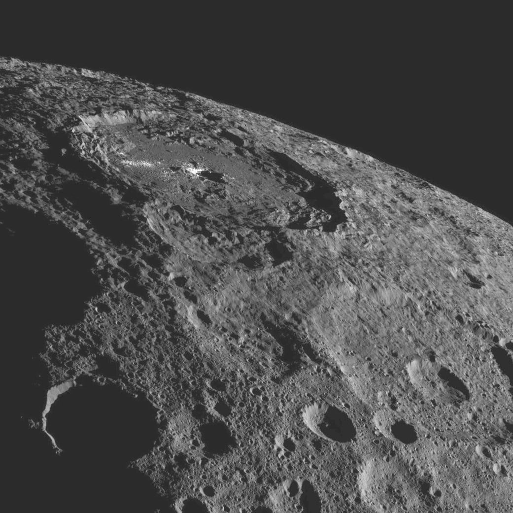 Uno de los descubrimientos más impactantes de la misión Dawn fue la detección de manchas brillantes en el interior de cráteres como Occator, las cuales fueron identificadas como depósitos de carbonatos y sales. Estas formaciones podrían haberse originado a partir de la sublimación de agua salina, dejando atrás los depósitos reflectantes que hoy observamos. La presencia de vapor de agua en la exosfera de Ceres, detectada por el telescopio espacial Herschel, refuerza la hipótesis de que el planeta enano sigue perdiendo material volátil al espacio, posiblemente a través de procesos de sublimación o actividad criovolcánica intermitente.